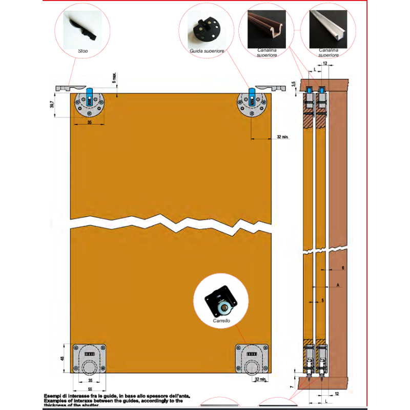 - n.2 guida superiore in plastica nera, ad incasso con perno a molla